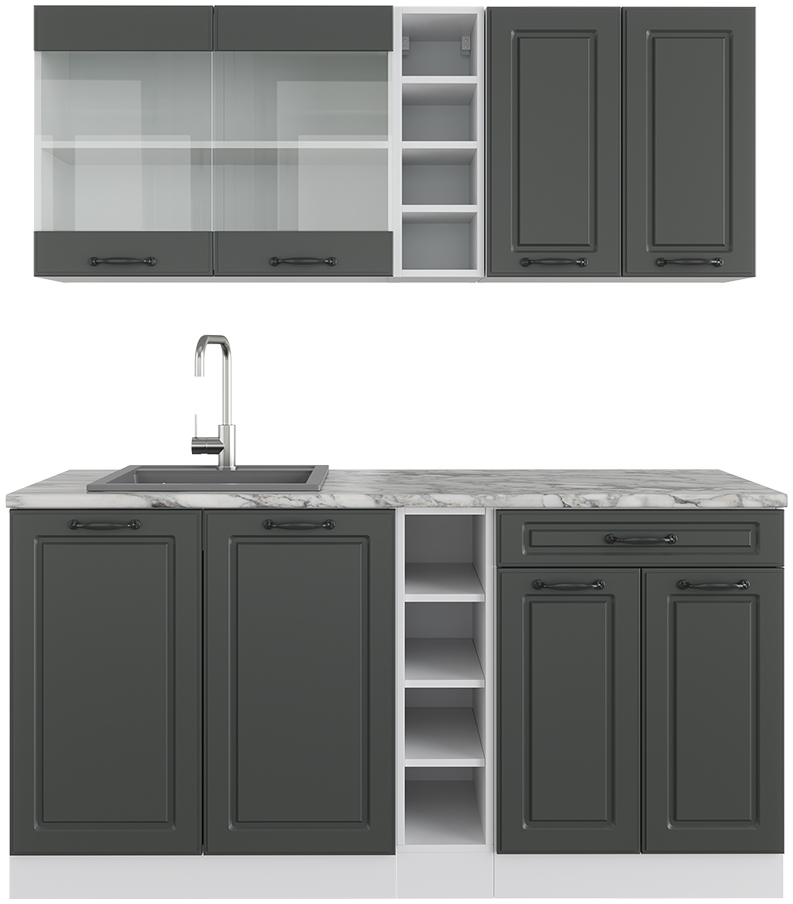 | Name | Singleküche R-Line Anthrazit Landhaus/Weiß 160 cm ohne Arbeitsplatte Vicco |