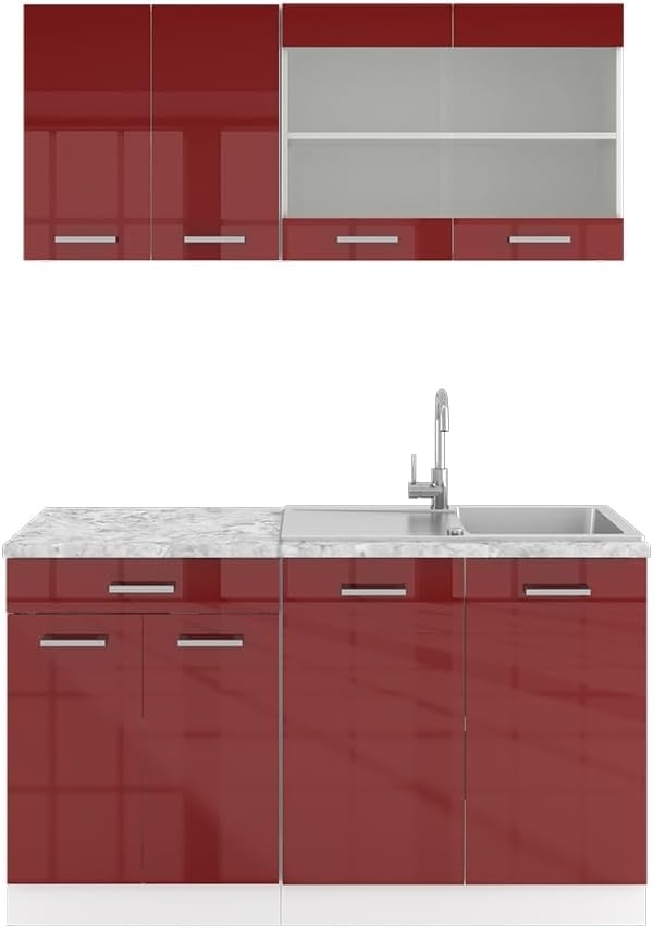 | Name | Singleküche R-Line Rot Hochglanz/Weiß 140 cm , AP Marmor Vicco |