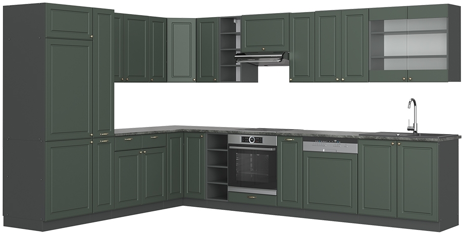 Eckküche Fame-Line Grün-Gold Landhaus/Anthrazit 347 x 46 cm ohne Arbeitsplatte Vicco
