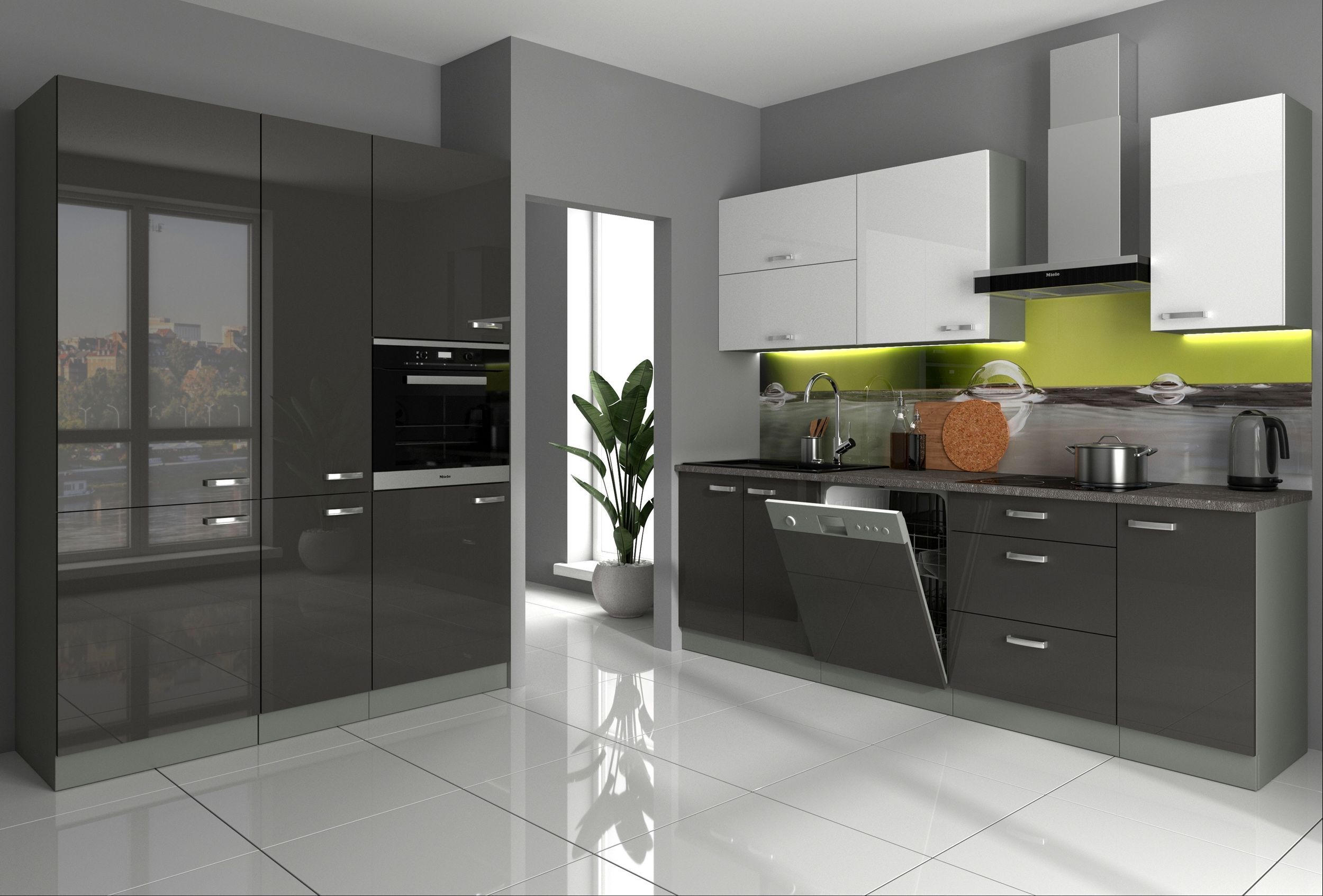 Küche Bianca IV 240+160 cm Küchenzeile in Hochglanz Grau Weiss Küchenblock Grey