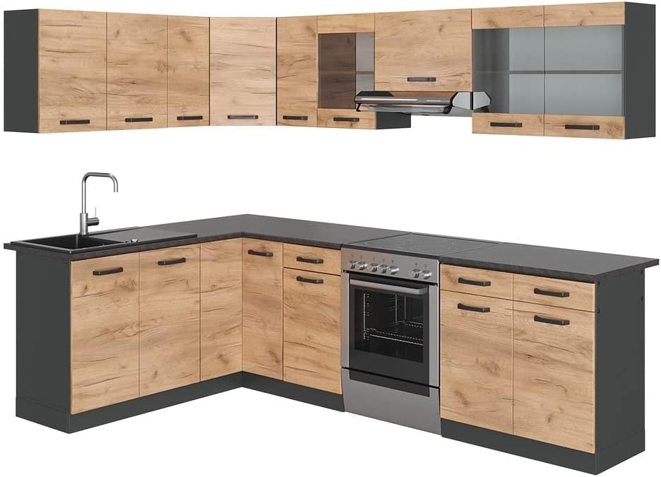 Eckküche Rick Goldkraft Eiche/Anthrazit 270 x 60 cm AP Schwarz Vicco