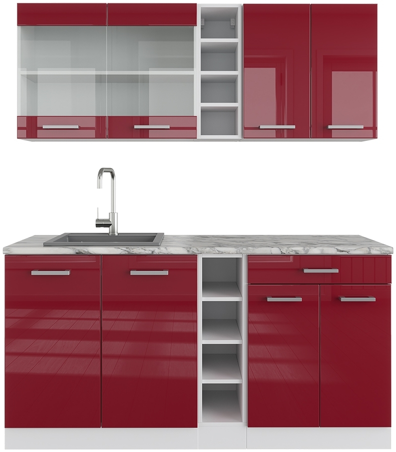 | Name | Singleküche R-Line Rot Hochglanz/Weiß 160 cm , AP Marmor Vicco |