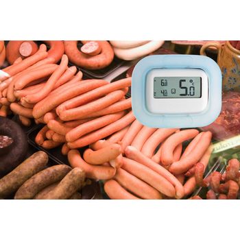 - Das Thermometer kann sowohl auf Oberflächen als auch hinter Glas (z.B. in Vitrinen oder Gemüsefächern) platziert werden.