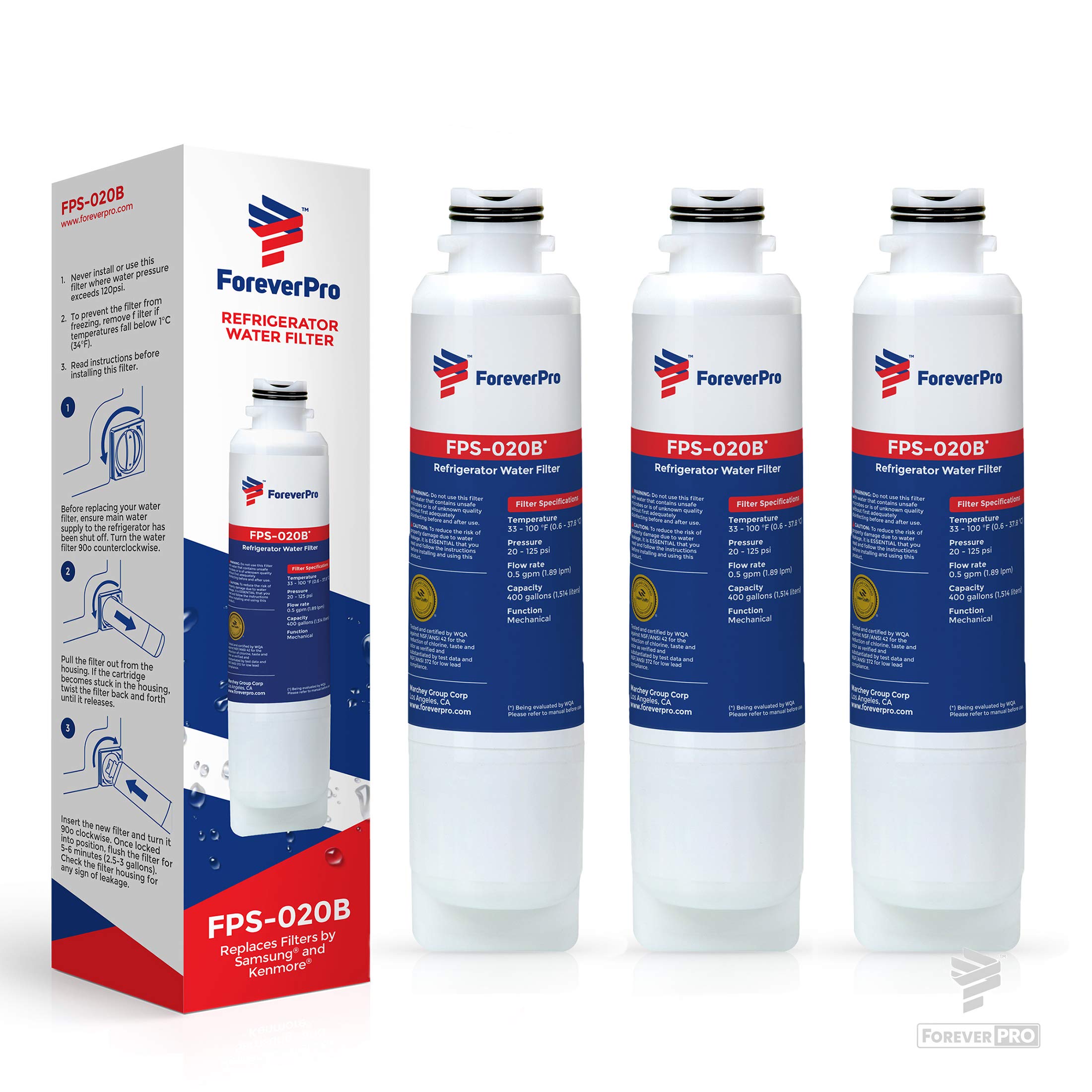 ForeverPRO zertifiziert DA29–00020B Kühlschrank-Wasserfilter 3 Stück für Samsung DA29–00020BDA29–00020A, HAF-CIN, HAF-CINEXP, 46–9101