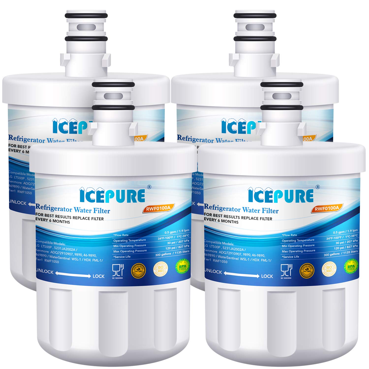 in Kühlgeräte-Zubehöricepure LT500P Kühlschrank Wasser Filter Ersatz LG LT500P5231ja2002, adq729109010,5231ja2002 a 4PACK multi