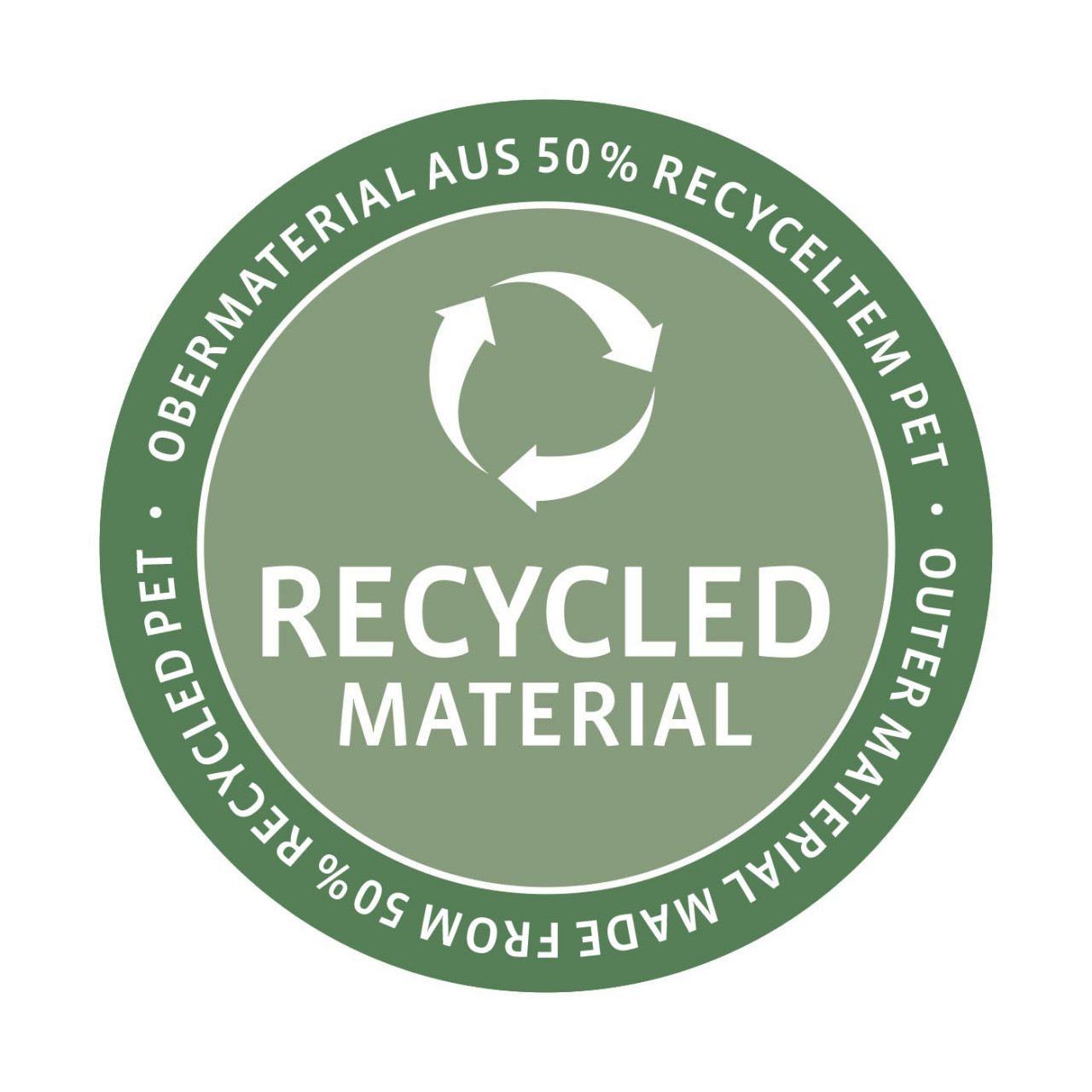 - Das Obermaterial besteht aus hochwertigem, recyceltem Polyestergewebe, das wasserabweisend ist.