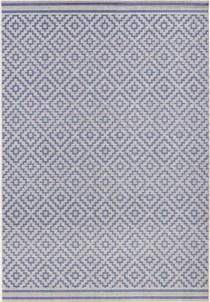 In- & Outdoor Teppich Raute blau/creme - 80x200x0,8cm