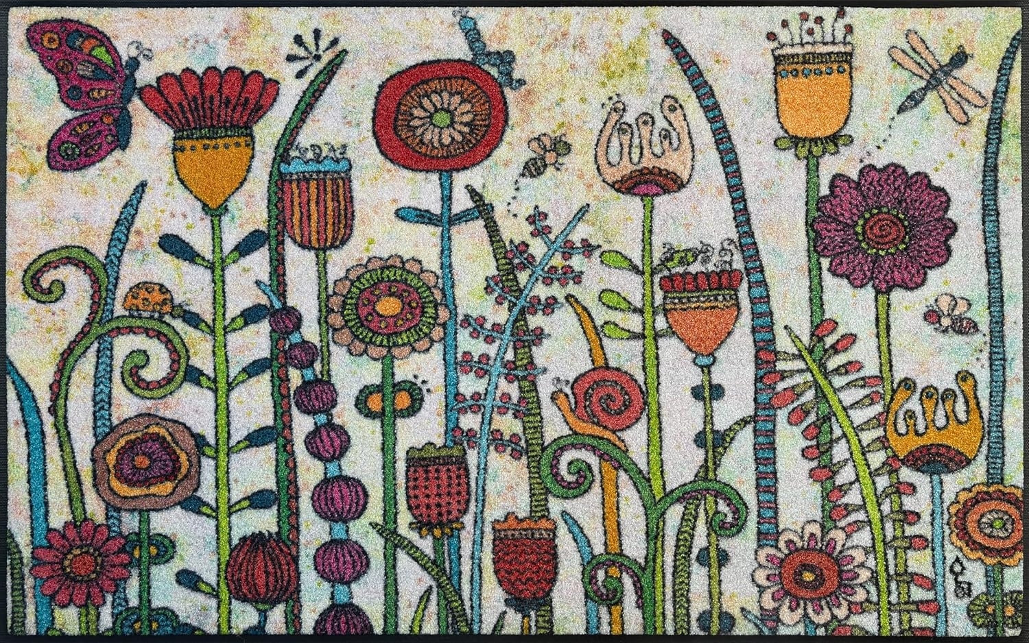 Der wash+dry by Kleen-Tex Teppich „Sonnentag“ bringt mit seinem fröhlichen Design eine positive Energie in Ihr Zuhause. Mit einer Höhe von 7 mm ist dieser rechteckige Teppich vielseitig einsetzbar, sowohl vor der Haustür als auch im Wohnbereich. Er ist waschfest und trocknergeeignet, was ihn ideal für Allergiker und Tierbesitzer macht. Der Teppich ist pflegeleicht, trittschalldämmend und rutschfest, sodass er sowohl Funktionalität als auch Stil bietet. **Highlights** - Design von Tina Hötzendorfer, das Freude und Farbe in den Alltag bringt - Waschfest und trocknergeeignet, ideal für Allergiker und Tierbesitzer - Rücken aus 100% Nitrilgummi für zusätzliche Stabilität - Tritt- und schalldämmend, sorgt für ein angenehmes Wohnklima - 100% PVC-frei, umweltfreundlich und sicher **Produkteigenschaften** - Maße (H): 7 mm - Pflegeleicht und für Saugroboter geeignet - Flacher Flor für einfache Reinigung - Hergestellt in Europa - Strapazierfähiges und zeitlos elegantes Design