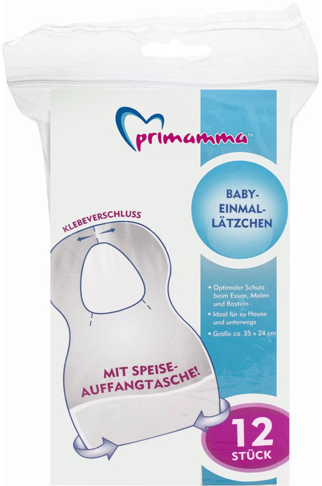 | Name | primamma 44015500 Baby Einmallätzchen, 12 Stück - Ideal für zu Hause und unterwegs |