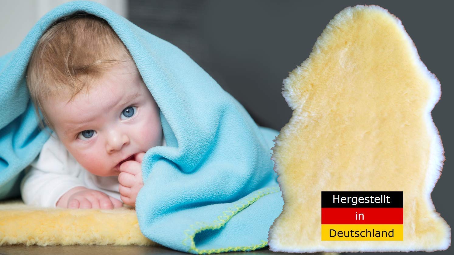 Baby Lammfell LANABEST. Premium Qualitätfabrikfrisch, schadstoffarm. Medizinische Gerbung, 30°C waschbar. Öko-Tex. Deutsches Merino Schaffell. Als Babyfell oder für den Kinderwagen. Geschenkqualität. Länge ca. 70 cm