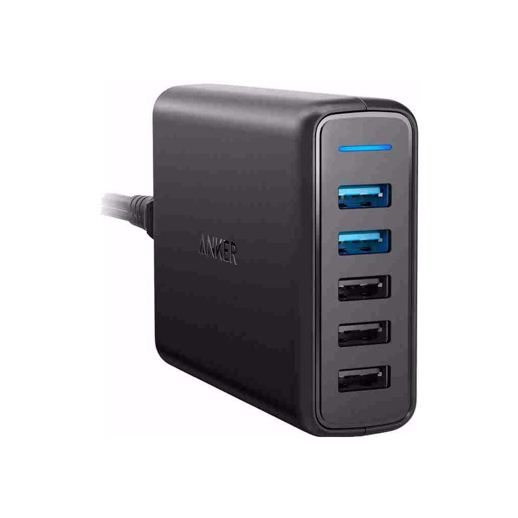 Anker PowerPort Speed 5 Innenraum Schwarz Ladegerät für Mobilgeräte - Ladegeräte für Mobilgeräte (Innenraum, Universal, AC, Überspannung, Überlast, Überlastschutz, Unterspannung, Kontakt, Schwarz)