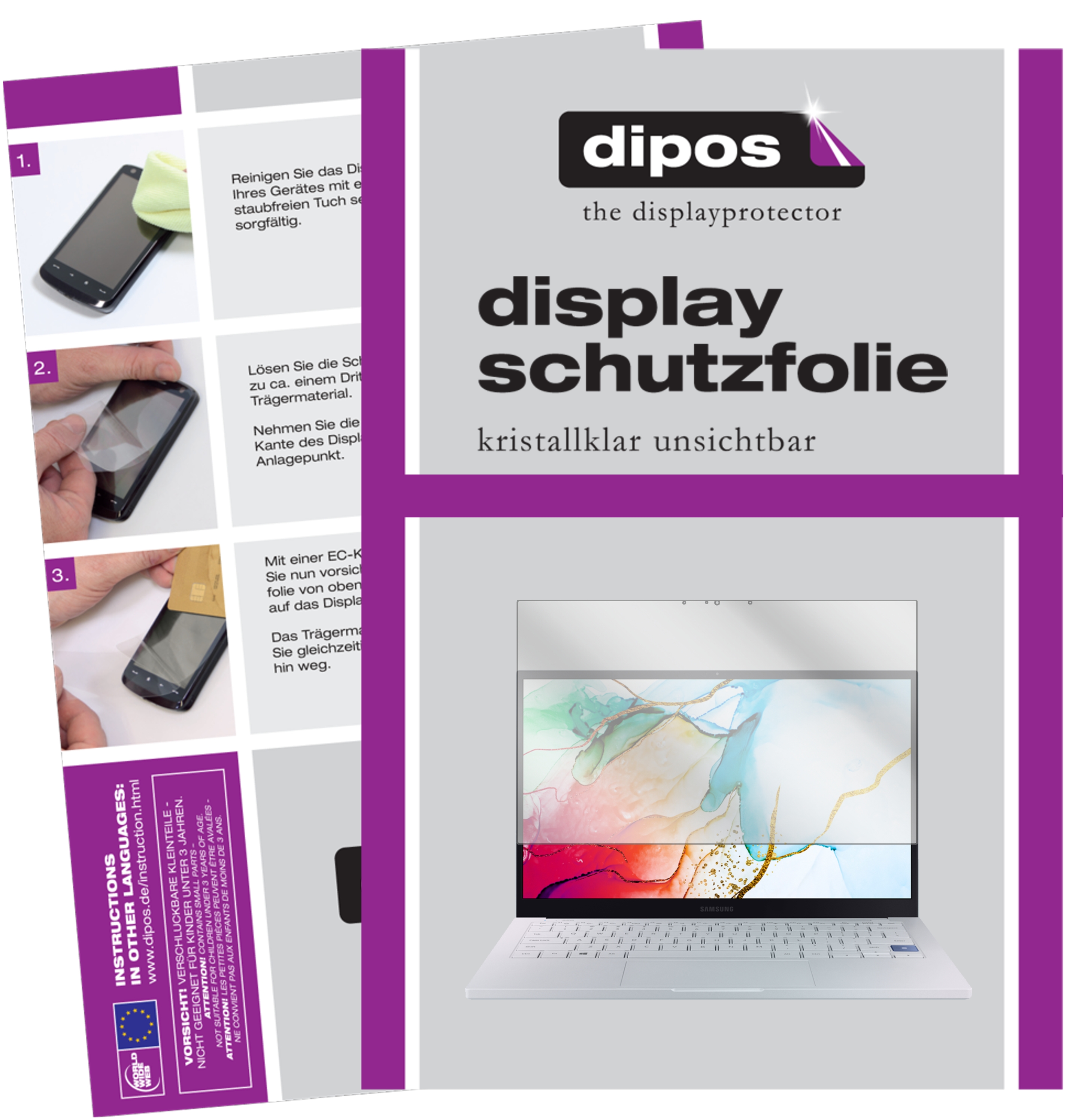 in Laptop-Zubehördipos Schutzfolie kompatibel mit Samsung Galaxy Book Ion 13.3 Zoll Displayschutz-Folie klar