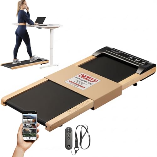 Skandika Walking Pad Nordik K6-H Laufband für zuhause mit 6 km/h, LED-Display, Fernbedienung und Kinomap, elegantes Design mit Echtholz-Details für Büro und Home Office