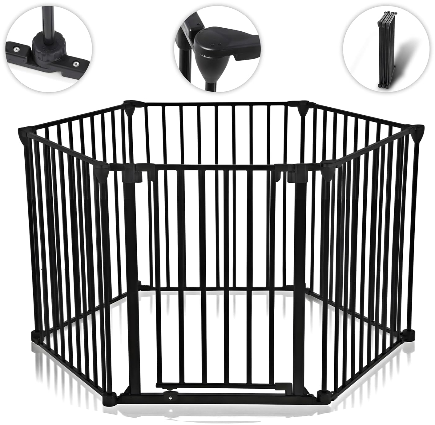 in LaufgitterBaby Vivo Kaminschutzgitter 380 cm XXL Absperrgitter 5+1 mit Tür in Schwarz (5 Elemente und eine Tür) - PREMIUM