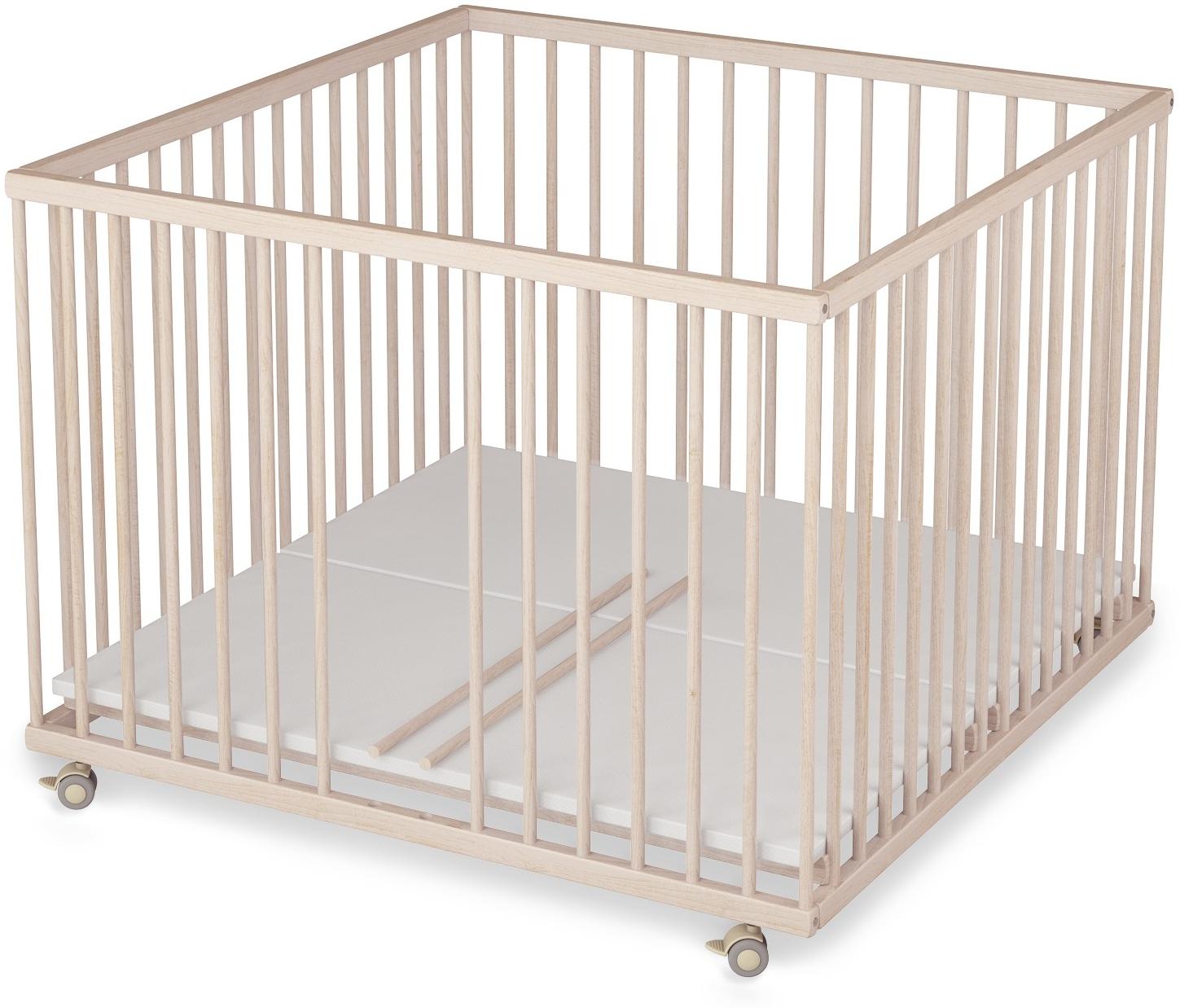 Das Laufgitter 100 x 100 cm mit Schlupfsprossen in natürlicher Farbe bietet Ihrem Kind Sicherheit und Komfort. Hergestellt nach DIN EN 12227:2010-12, überzeugt es durch stufenlose Höhenverstellung und eine hochwertige Buchenholzkonstruktion. Die Sämann Matratze mit Nässeschutz und Belüftungskanälen sorgt für einen gesunden Schlaf. Made in Germany. **Highlights** - Sicherheitsgeprüft nach DIN EN 12227:2010-12 - Stufenlose Höhenverstellung - Hochwertige Buchenholzkonstruktion - Sämann Matratze mit Nässeschutz und Belüftungskanälen - Umweltfreundliches Engagement: Ein Baum wird für jede Google Bewertung gepflanzt **Produkteigenschaften** - Außenmaß: 101 x 101 cm, Innenmaß: 98 x 98 cm, Höhe: 74 cm - Gewicht: 13 kg - Fein geschliffen und abgerundete Kanten - Keine Schadstoffe oder Chemikalien - Qualitätsmatratze geprüft nach DIN EN 71-3:2019-10 **Lieferumfang** - Stabiles Laufgitter aus deutschem Buchenhartholz - Gepolsterter HDF Boden mit Schaumstoffauflage - Montagebeutel und Höhenverstellungsset - 4 gummierte Rollen - Qualitätsmatratze von Sämann©