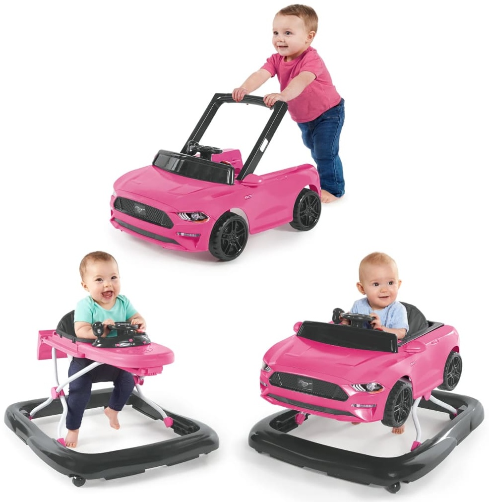 - Die Bright Starts 3-in-1 Lauflernhilfe im Ford Mustang Design bietet ein ansprechendes rosa Farbkonzept.