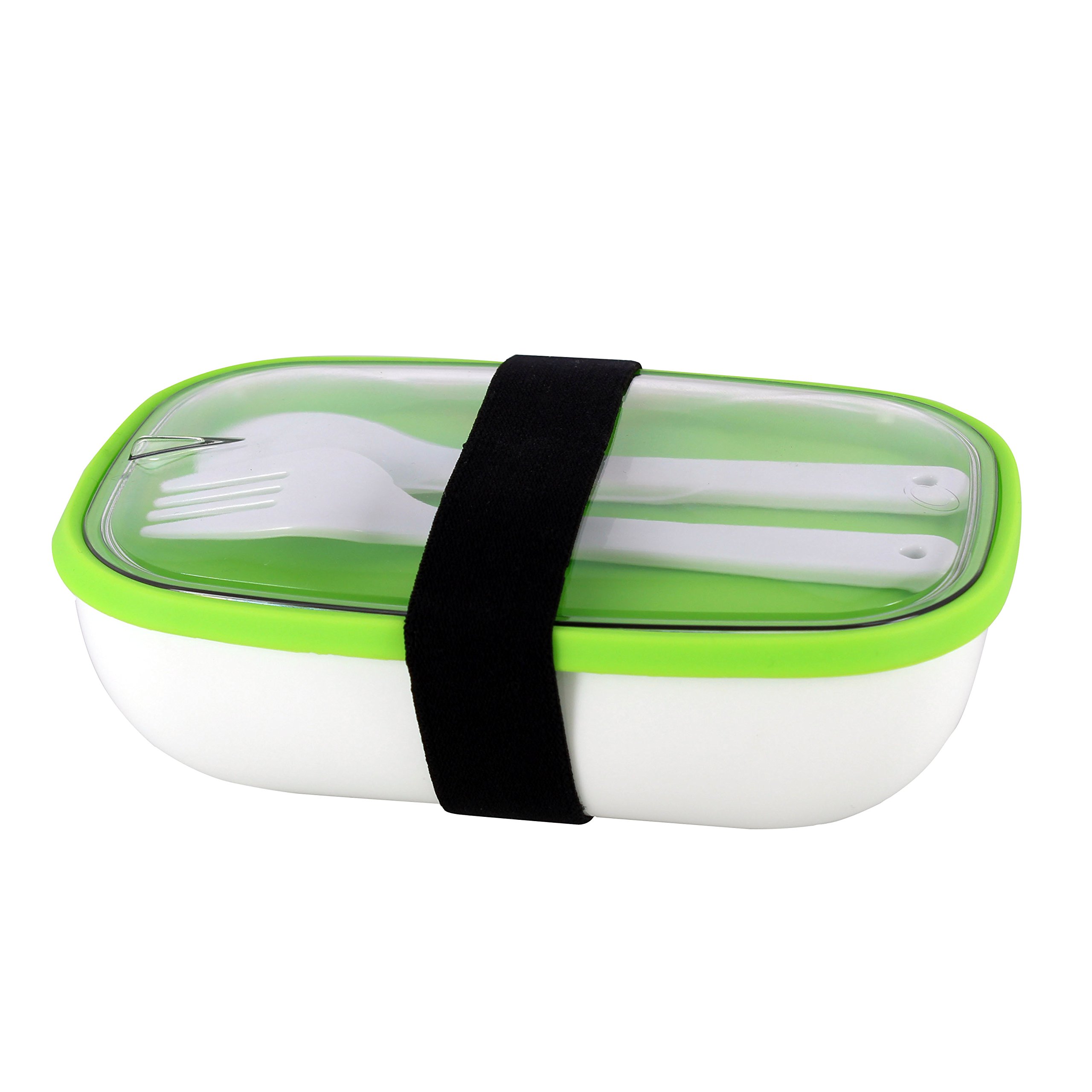 The Küchenzeile 5040443 Brotdose mit BesteckKunststoff, weiß-grün, 17,8 x 11,7 x 6 cm