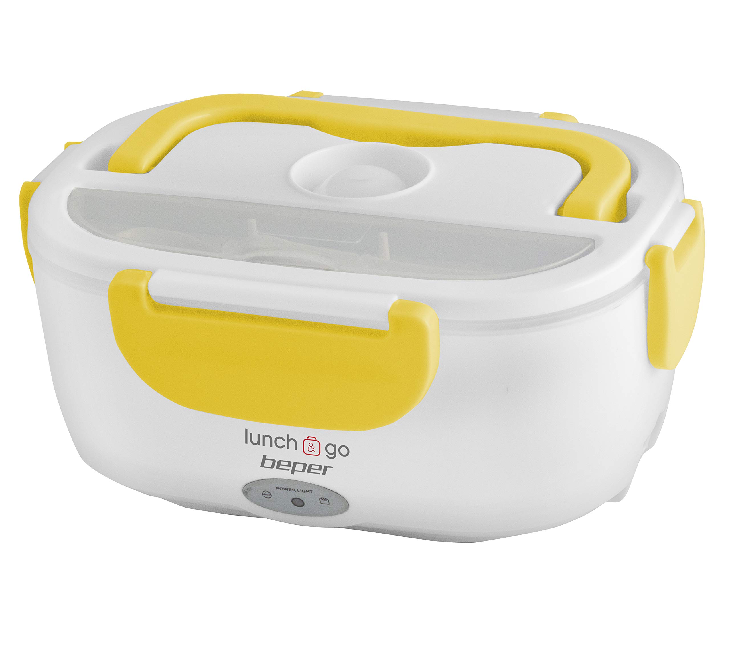 Beper Lunch & Go - Wärmende Lunchboxtragbarer elektrischer Speisenwärmer, 2 herausnehmbare Behälter, Stahlheizplatte, mitgeliefertes Plastikbesteck, 220 V - Gelb