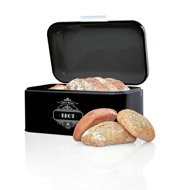 Omi's Beste BrotkastenBlech, aus Metall, Brotbehälter Brotdose Brotaufbewahrung, schwarz