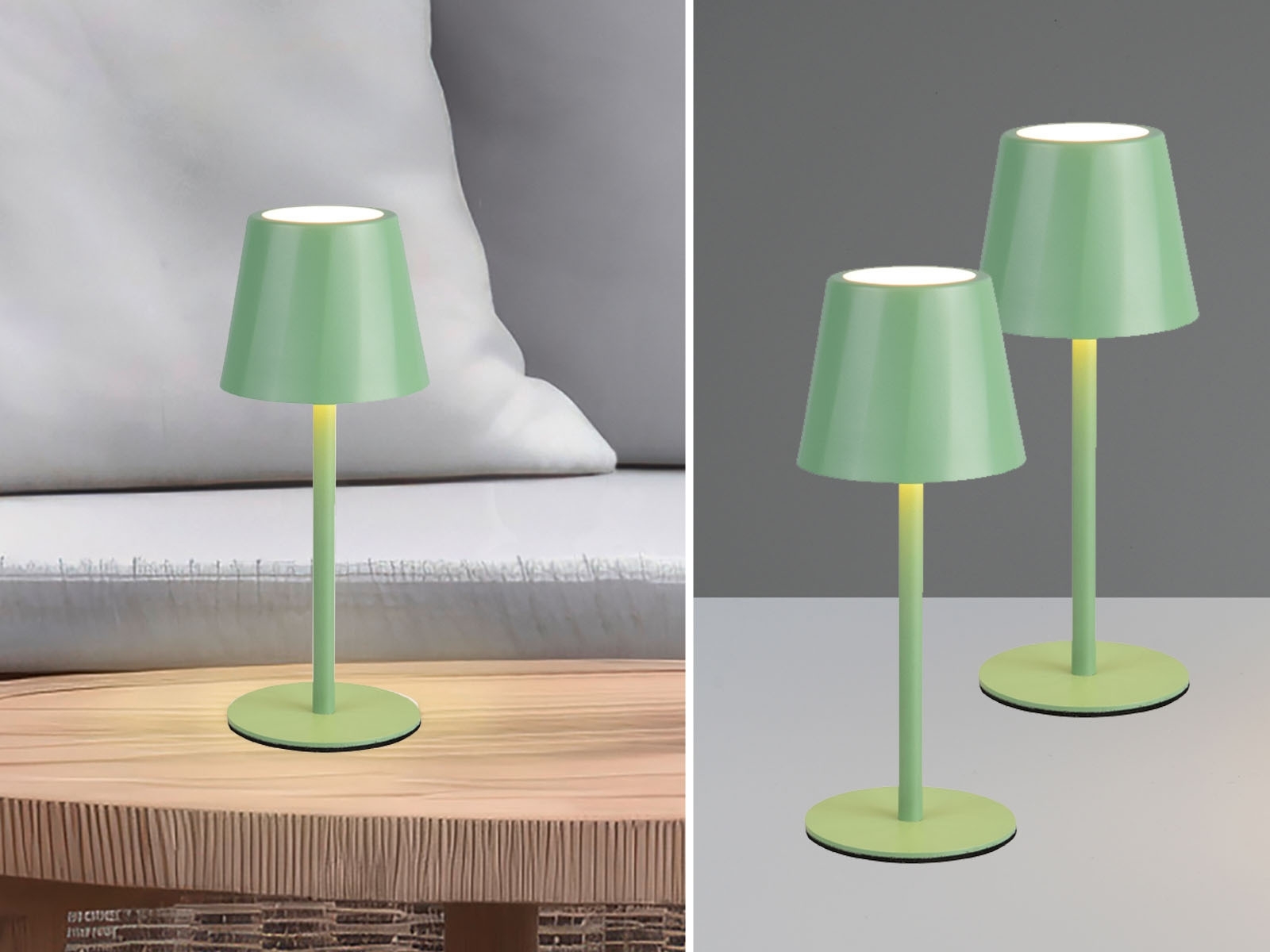 2er SET Akku LED Tischlampen kabellos für Innen & AußenGrün - 21cm klein