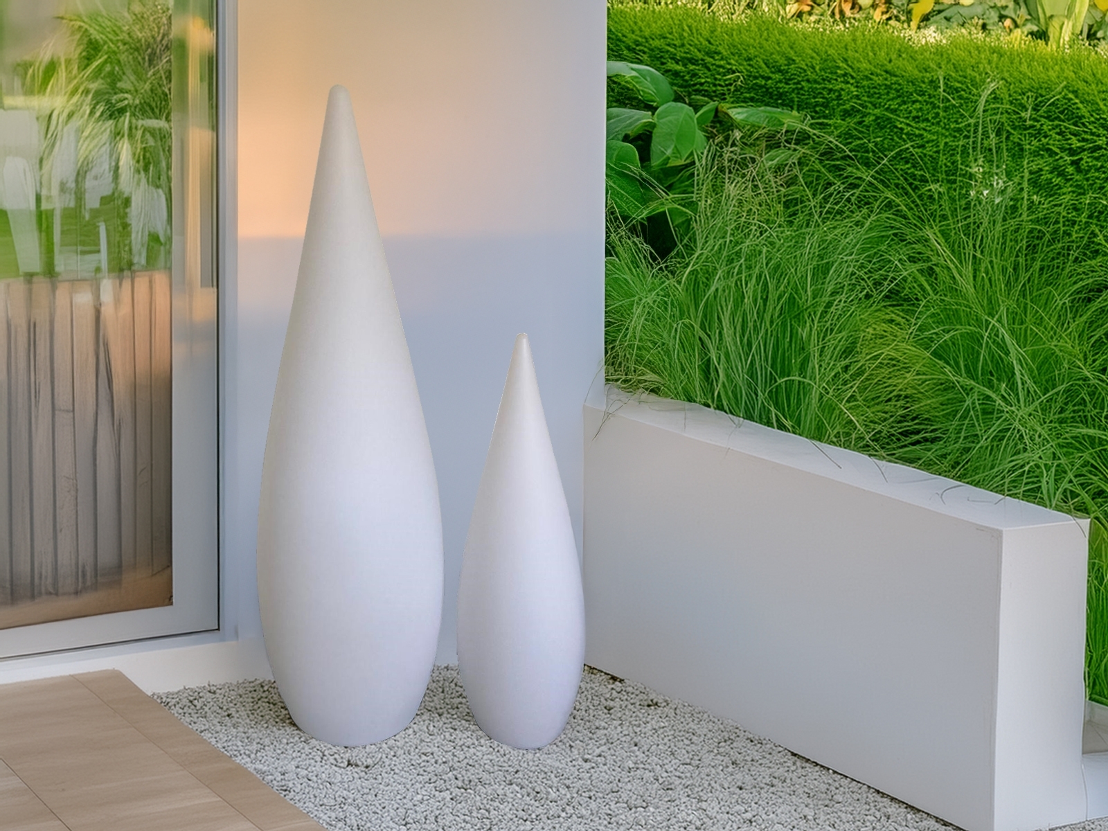 - Das Set enthält zwei Gartenleuchten in unterschiedlichen Größen, die aus robustem Kunststoff gefertigt sind