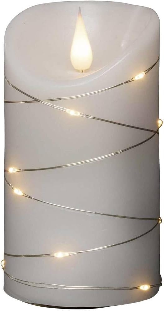 LED Echtwachskerze mit 3D Flamme mit warmweißer Diode silberfarbener Draht mit 13 weiteren LED-Tropfen Mit praktischem 4- und 8-Stunden-Timer