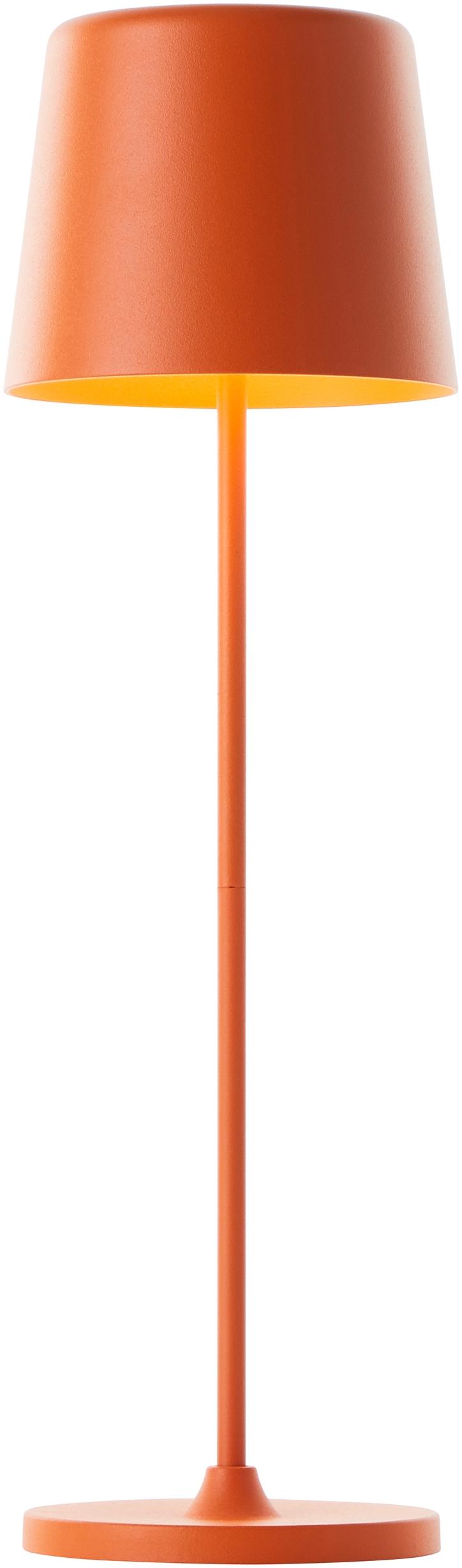 - Die LED-Tischleuchte Kaami in mattem Orange bietet ein modernes und elegantes Design, das sich perfekt in deine Außeneinrichtung einfügt.