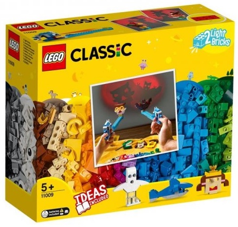 LEGO® Classic 11009 - Bausteine - Schattentheater Artikel: Bausteine - Schattentheater Altersangabe: 5+ Anzahl Teile: 441 Mit diesem witzigen LEGO® Set können Kinder auf zweifache Weise kreativ werden. Erst bauen sie coole Modelle, und dann verwandeln sie ihre Modelle mithilfe des Leuchtstein-Schattenwerfers in Schattenfiguren! Aus LEGO Steinen werden Schattenspiele Kinder ab 5 Jahren werden begeistert sein, wenn sich ihre Mini-Modelle in coole Schattenbilder verwandeln! Wenn sich die Bilder bewegen, schrumpfen und größer werden, lassen die Kinder ihrer Fantasie freien Lauf und erzählen unzählige Geschichten als Schattenspiele. Das Set enthält 12 witzige LEGO Modelle zum Zusammenbauen: eine Burg, ein Gesicht, eine Prinzessin, eine Fledermaus, einen Hahn, einen Ganoven, ein Piratenschiff, eine Eule, einen Geist, eine Windmühle, einen Hai und einen Dinosaurier. Außerdem gibt es zusätzliche Steine für eigene Modelle, damit alles möglich ist! Und wenn die 2 Schattenwerfer dann eingeschaltet werden, findet der Schattenspiel-Spaß kein Ende! Während die Kinder kreative Schatten gestalten und an die Wand werfen, entwickeln sie wichtige Fähigkeiten! LEGO Classic Sets enthalten Bauideen, die von Kindern aktiv umgesetzt werden können. Die einfachen Bauanleitungen für die witzigen Modelle lassen Kinder rasch mit ihren Indoor-Aktivitäten beginnen. Wenn sie dann entdecken, wie viel Spaß es macht, eigene Modellen entstehen zu lassen, erwerben sie die nötigen Fähigkeiten für eine erfolgreiche Zukunft.