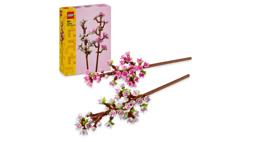 - Die LEGO Creator Kirschblüten (40725) sind ein Set mit zwei blühenden Zweigen, besetzt mit anpassbaren pinken und weißen Knospen, ideal für Fans der Floristik ab 8 Jahren.
