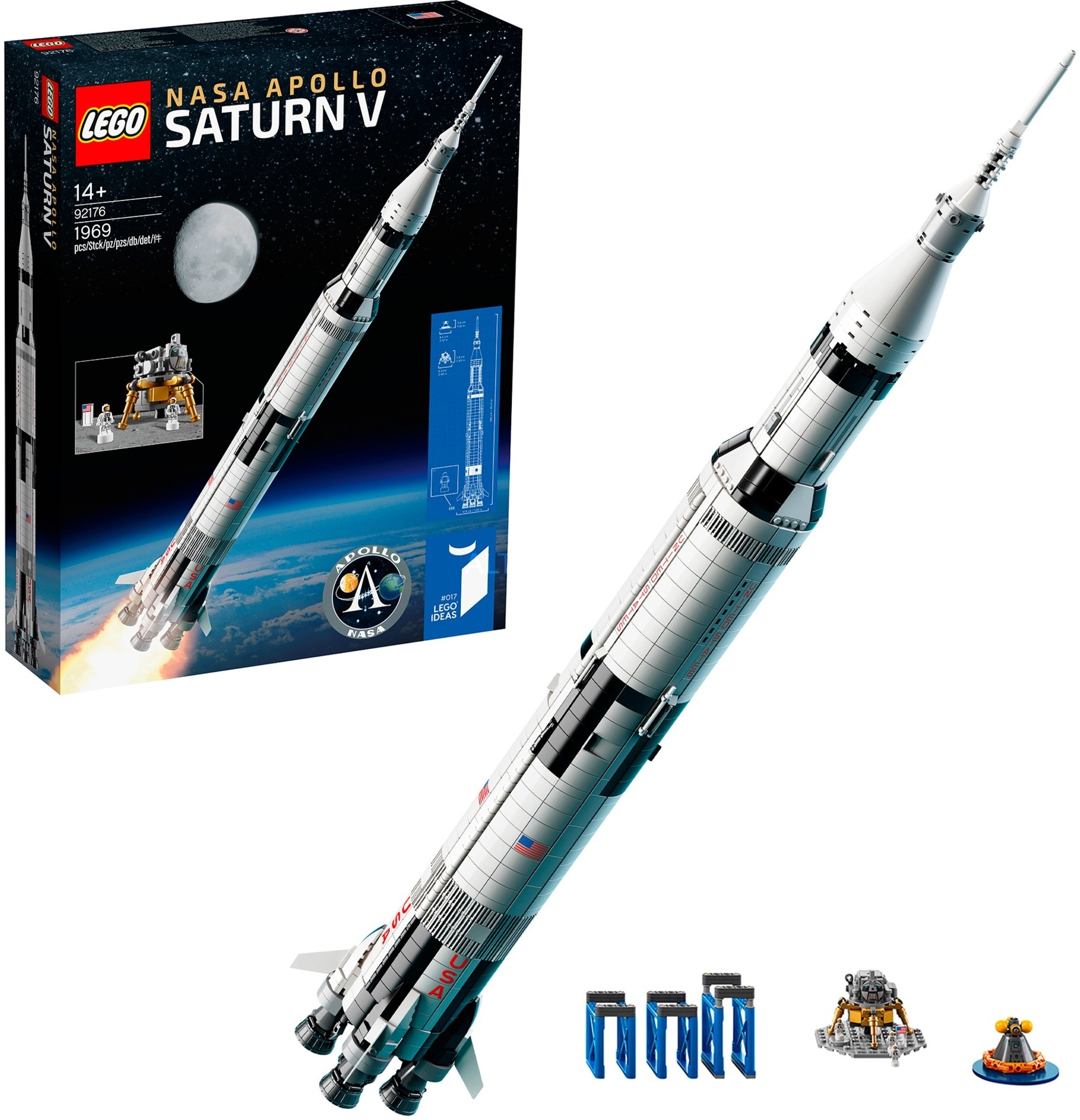 - Das LEGO Ideas 92176 'NASA Apollo Saturn V' Set enthält 1969 Teile und ist für Kinder und Erwachsene ab 14 Jahren geeignet.