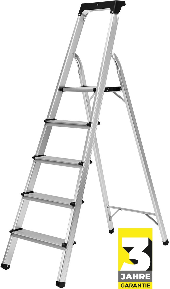 Black Deal in LeiternCraftfull Stehleiter CF-133B Aluminium Haushaltsleiter Leiter klappbar Ablage (5 Stufen)
