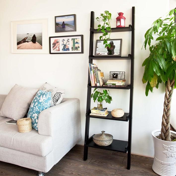 Modernes Leiterregal mit 5 Böden,Standregal,Bücherregal,schwarz,FRG17-SCH