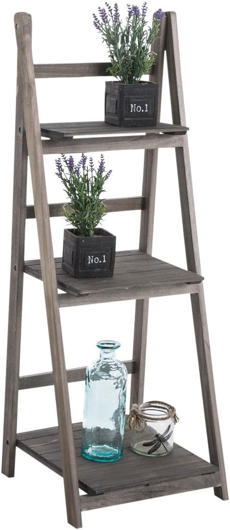 Das Treppenregal Yana in hellbraun vereint stilvolles Design mit Funktionalität. Mit einer Gesamthöhe von 111 cm, einer Gesamtbreite von 42 cm und einer Gesamttiefe von 39 cm bietet es drei Ebenen in unterschiedlichen Höhen. Hergestellt aus Holz im Landhausstil, ist es ideal für Schlafzimmer, Flur oder Wohnzimmer und lässt sich platzsparend zusammenklappen. **Highlights** - Vielseitig einsetzbar im Wohnbereich - Schlichtes und stilvolles Design - Drei Ebenen mit verschiedenen Höhen - Zusammenklappbar - Passt perfekt in den Landhausstil **Produkteigenschaften** - Gesamthöhe: 111 cm - Gesamtbreite: 42 cm - Gesamttiefe: 39 cm - Höhe Regal unten (ab Boden): 13 cm - Höhe Regal Mitte (ab Boden): 54 cm - Höhe Regal oben (ab Boden): 86 cm - Material: Holz - Wohnstil: Landhausstil