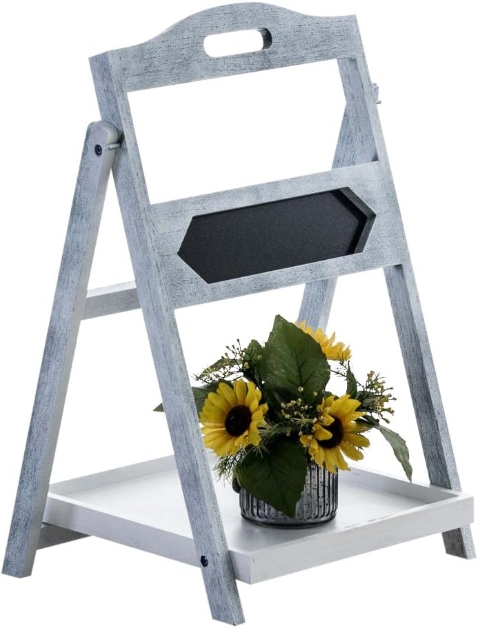 Dekoregal mit Tafel Mark in antik-grau – der romantische Hingucker im Landhausstil! Ideal für Flur, Küche, Café oder Geschäftsräume. Die filigrane Tafelfläche ermöglicht kleine Botschaften, während die Ablage Platz für Blumen, Bücher oder Deko bietet. Schaffen Sie ein gemütliches Ambiente mit vielseitigen Stellmöglichkeiten. **Highlights** - Romantisches Design im Landhausstil - Filigrane Tafelfläche für Botschaften - Zusätzliche Ablage für Deko und Gegenstände - Vielseitige Einsatzmöglichkeiten - Antik-graue Farbgebung **Produkteigenschaften** - Gesamthöhe: 65 cm - Gesamtbreite: 42 cm - Gesamttiefe: 38 cm - Ablagefläche (BxT): 32,5 x 35,5 cm - Kreidetafel (BxH): 30 x 7,5 cm