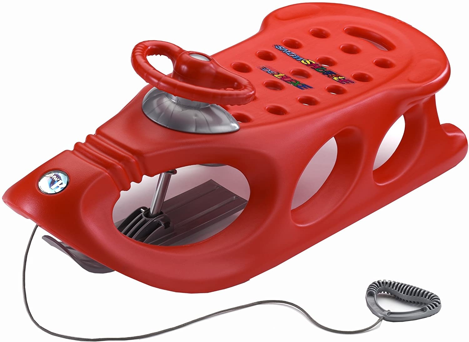 Ein Sportrodel neuer Art für ein oder zwei Personen aus doppelwandigem, hochwertigem, kältebeständigem Kunststoff. Geeignet ist dieser Lenkschlitten für Kinder, Jugendliche und Erwachsene. Er besticht durch sein exzellentes Design, gepaart mit ausgereifter Konstruktion und Anwendung von Erkenntnissen des Hochleistungs-Schlittensports mit Lenkrad und Mittelkufe. Eine bequeme und sichere Sitzposition ist durch die Griffe im hinteren Außensitzbereich sowie durch die eingearbeiteten Fußablagen über die gesamte Kufenlänge gegeben. {br}Die bewährte Stufenform der Kufen für alle Schneearten und -höhen wurde noch durch eingelassene Edelstahlkufen verbessert. Zum Transport von Kleinkindern ist eine problemlose Montage des Allround Seat Schlittensitz möglich. {br}{br}Details:{br}- Nutzbarkeit: 1 - 2 Sitzer{br}- Temperaturbeständigkeit: bis -20°C{br}- Alter: ab ca. 8 Jahre{br}- Belastbarkeit: ca. 90 kg{br}- Größe ca. 110 x 47 x 25cm{br}{br}Gewicht ca. 5600g{br}Farbe rot{br}{br}{br}.