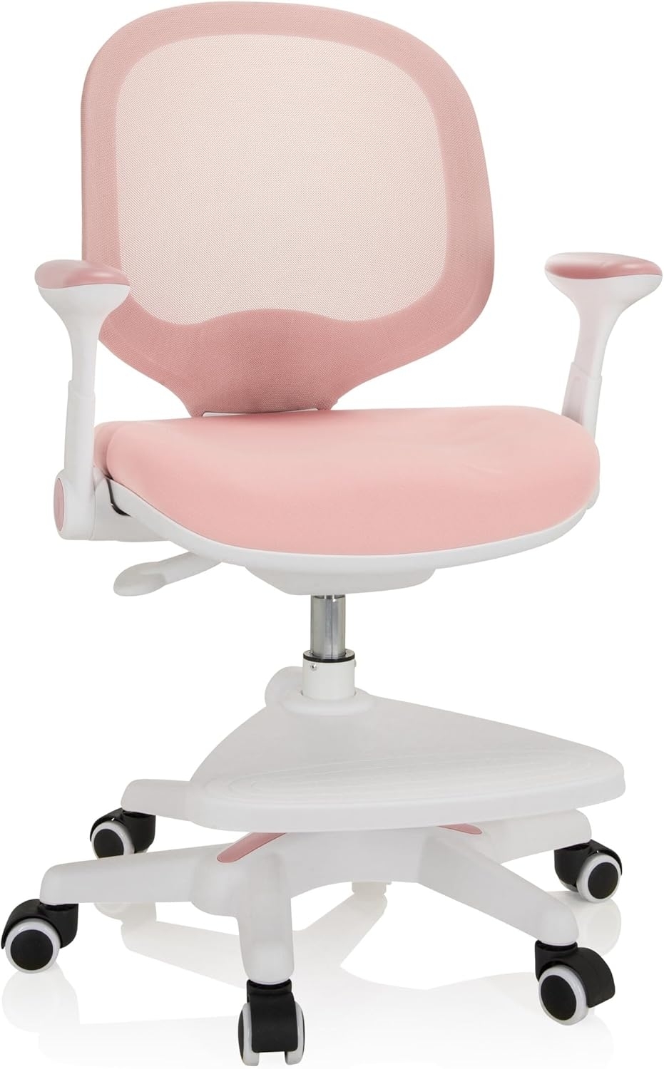 hjh OFFICE 736412 Kinder Schreibtischstuhl Kid Ergo Stoff/Netz Kinderstuhl mit FußablageArmlehnen klappbar, Rosa/Weiß