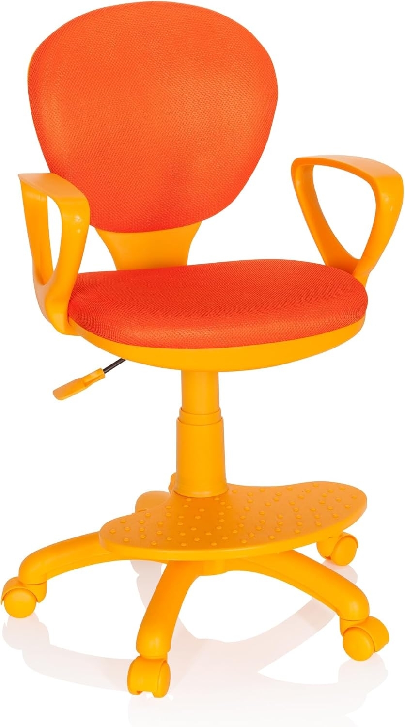 hjh OFFICE 671008 Kinderdrehstuhl Kid Colour Stoff Orange Schreibtischstuhl KinderFußablage & Sitzfläche höhenverstellbar