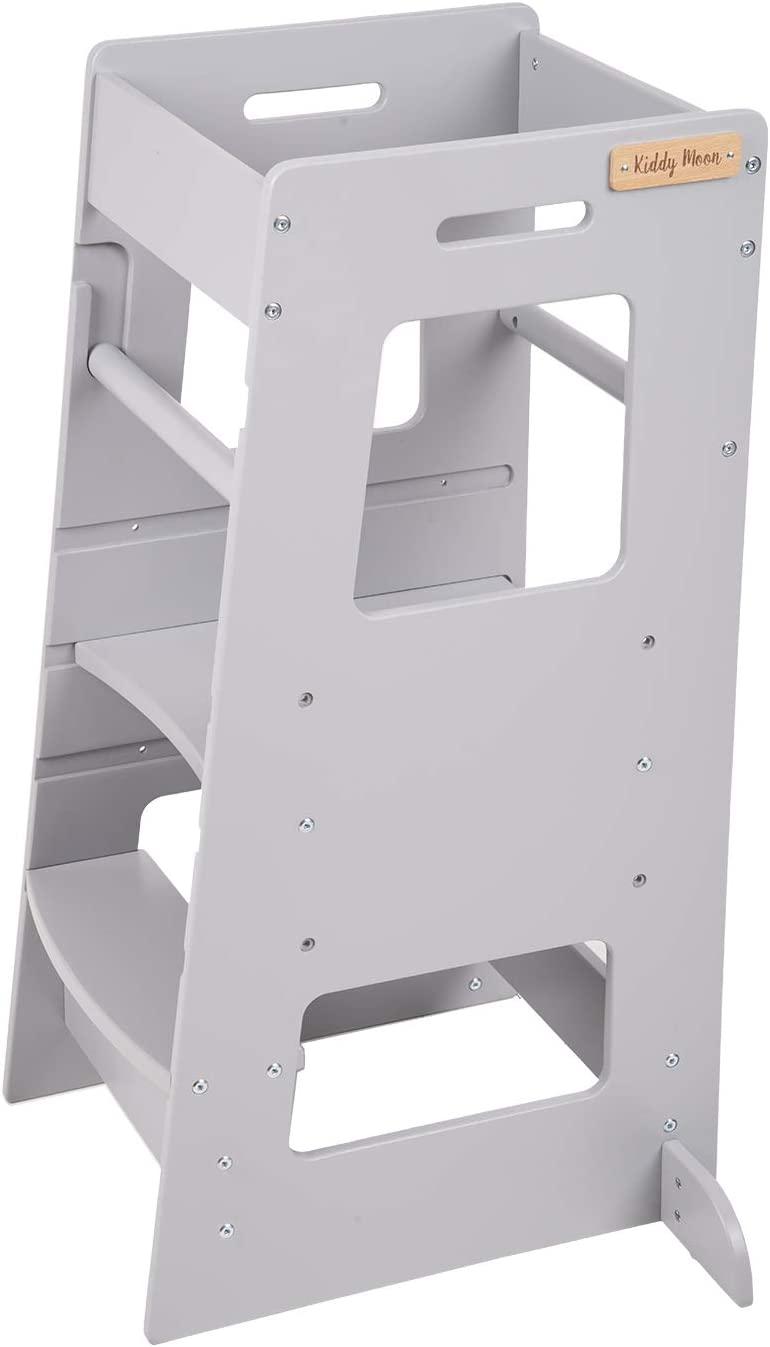KiddyMoon Lernturm Für Kinder Baby Lernstuhl Montessori Küchenhelfer ST-003Grau, (HxTxB) 91,5 x 49,4 x 39,3 cm