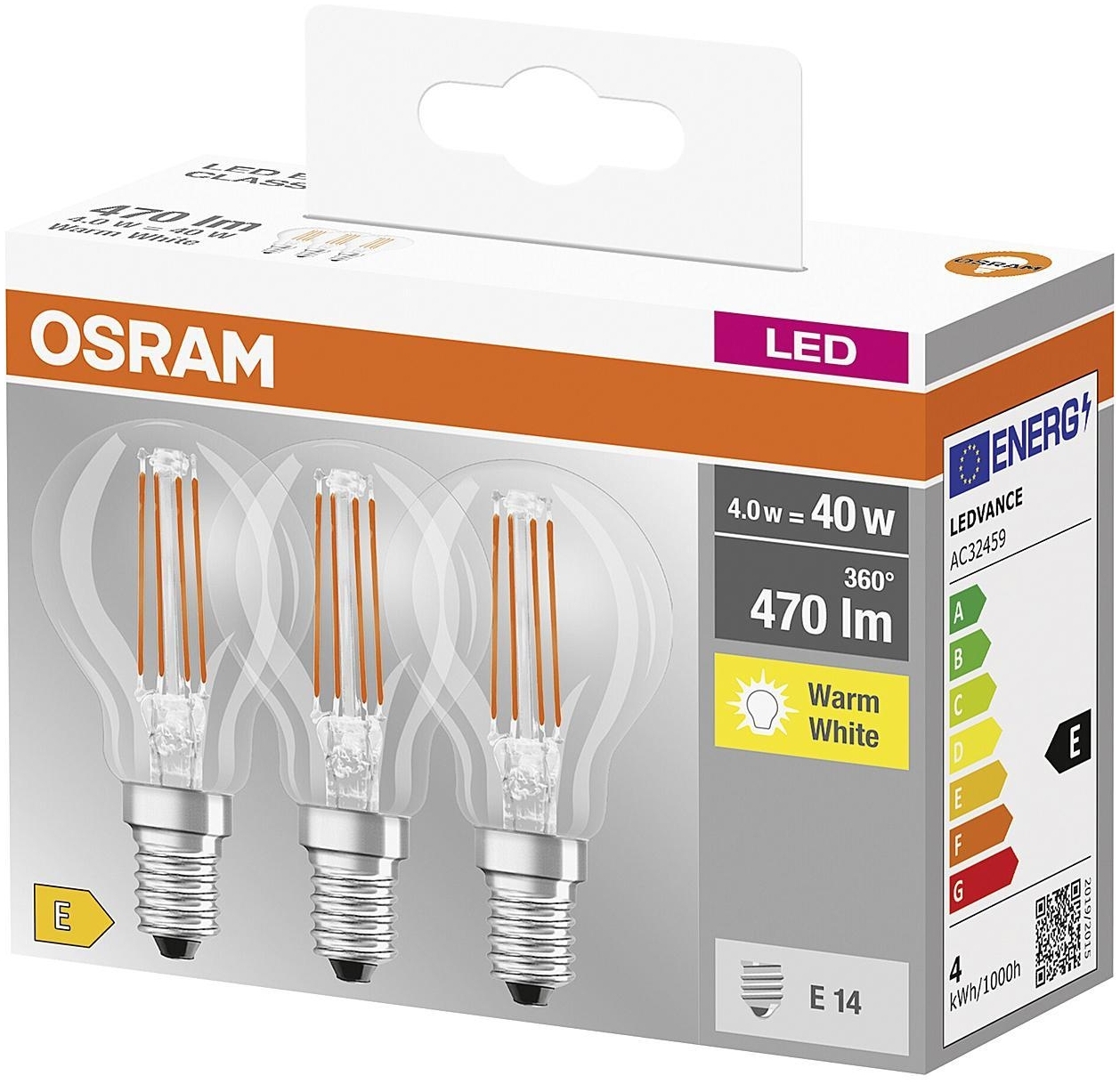 | Name | OSRAM LED Base Classic LED Lampe (ex 40W) 4W / 2700K 3er Pack E14 |
