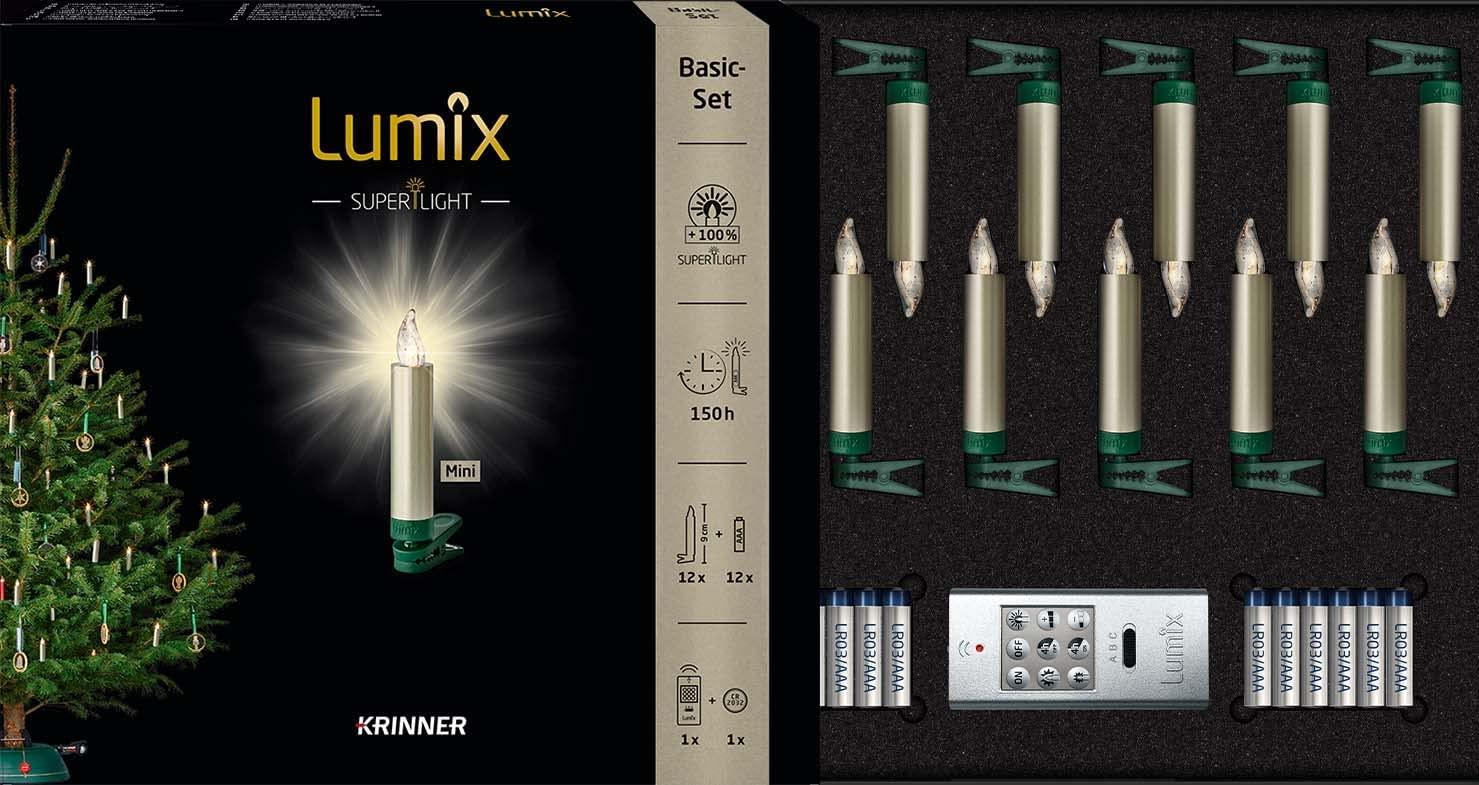| Name | kabellose Kerzen, LUMIX SUPERLIGHT MINI, superhelle warmweiße LEDs, cashmerefarben, Basis-Set, 12 Stück |