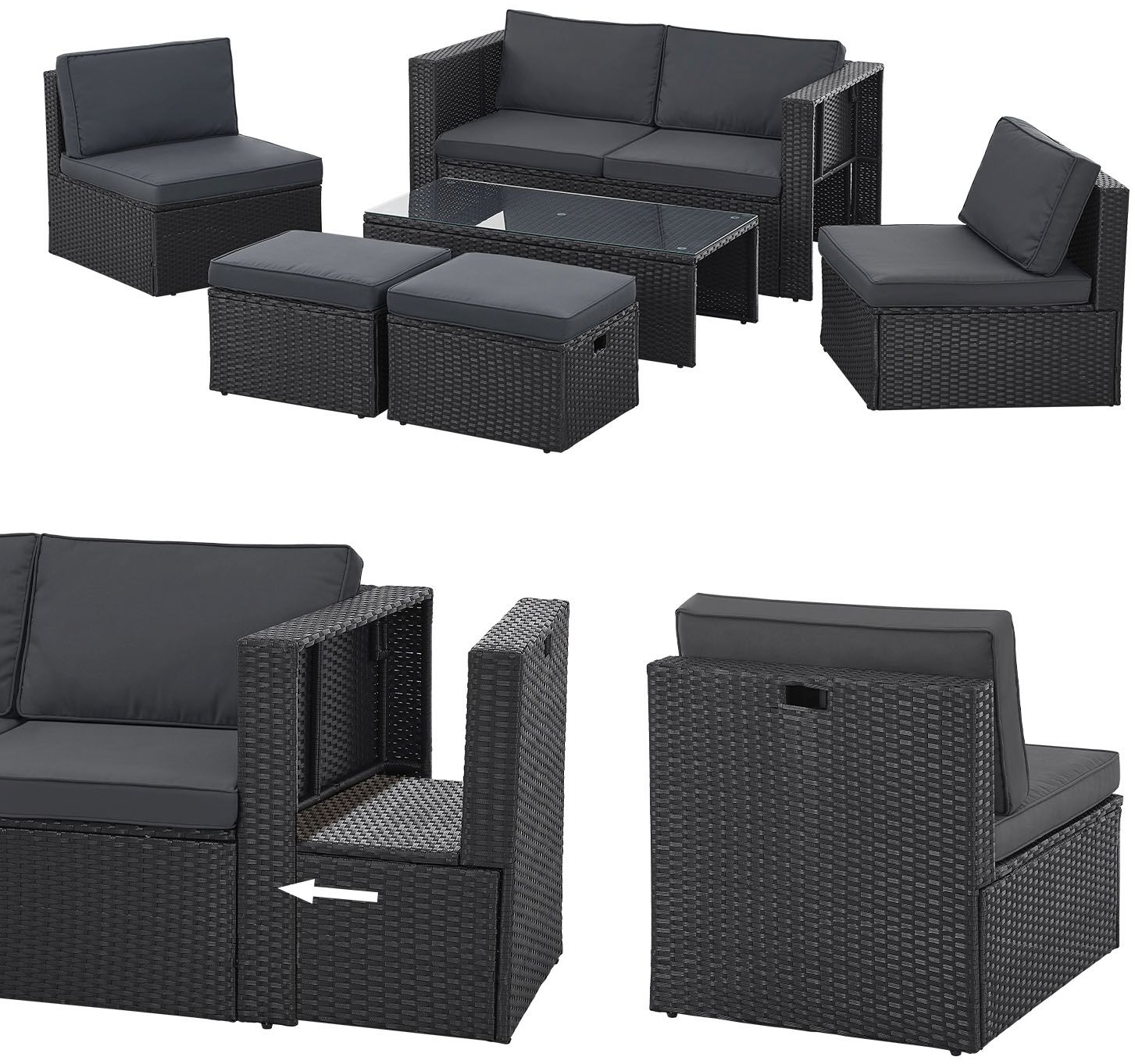 | Name | Juskys Polyrattan Gartenmöbel Set Salou - Outdoor Lounge wetterfest 6 Personen - Sitzecke mit Tisch & Kissen für Garten, Balkon, Terrasse - Schwarz |