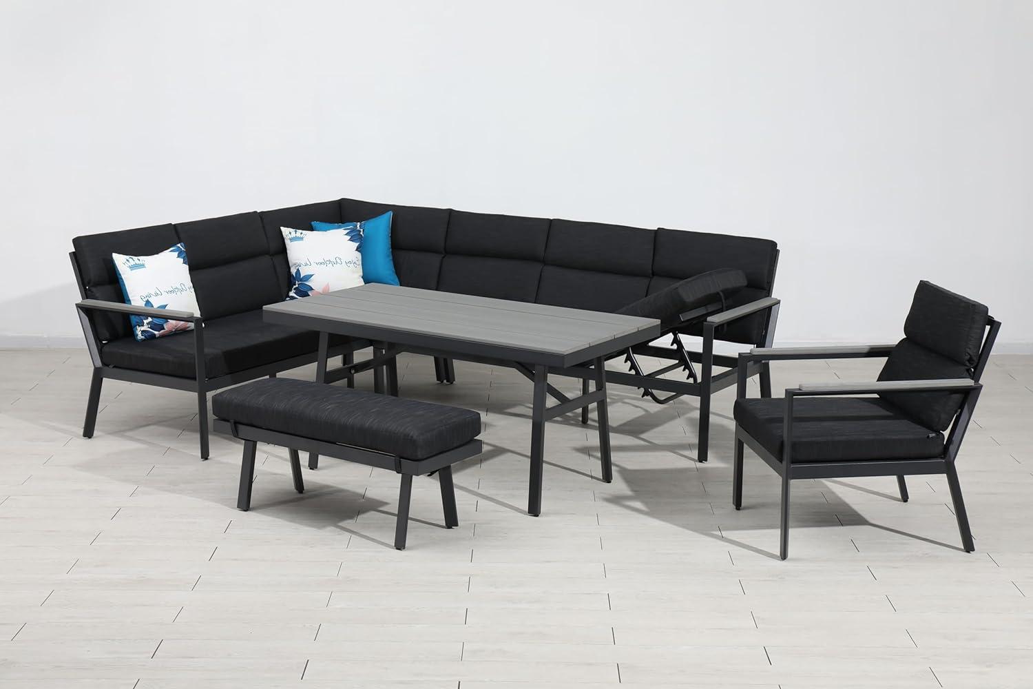 | Name | Gardissimo 'Nabari XL' Dining-Ecklounge mit Ecksofa, Bank, Tisch & Sessel, 10 Personen, Anthrazit / Grau, Links |