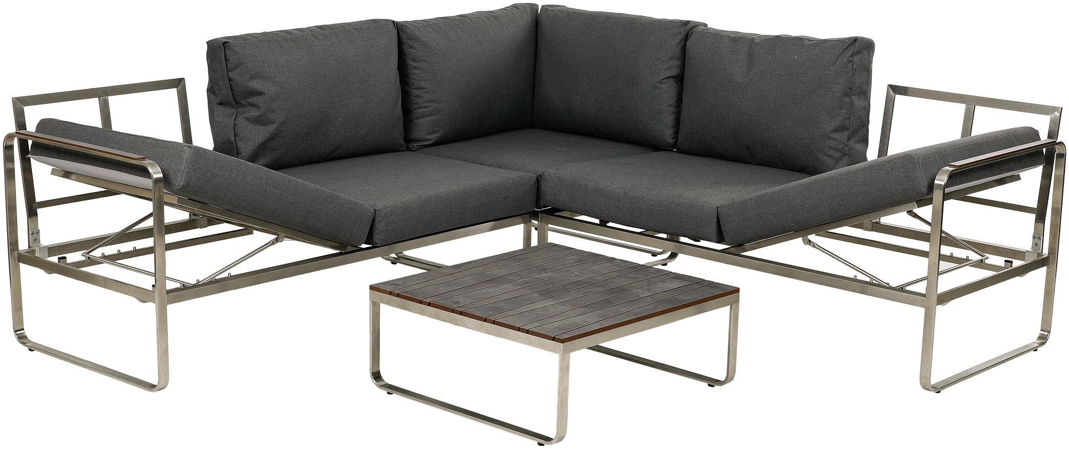 in Lounge Setsgreemotion Lounge-Set Boston4-teilig, Edelstahl-Ecksofa-Set mit Tisch und Polstern, Gartenmöbel-Set, Loungemöbel-Set