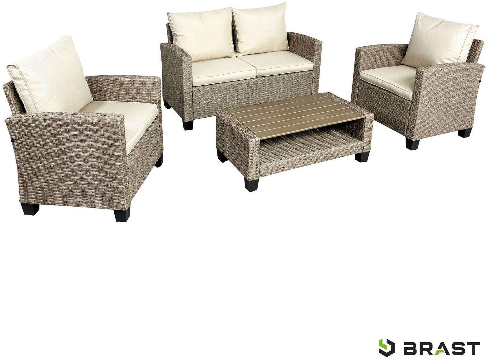 | Name | BRAST Gartenmöbel Set Delight Braun/Grau bis zu 4 Personen inkl. extra Dicke Kissen Outdoor Loungemöbel Sitzgruppe Essgruppe Garnitur |