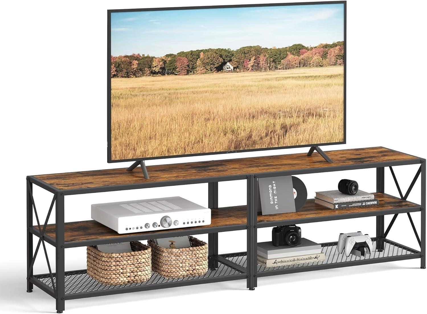 Vasagle TV-Schrank Fernsehtisch, Lowboard für Fernseher bis zu 75 Zoll, Fernsehschrank mit Ablagen, Stahlgestell, TV-Regal für Wohnzimmer, Schlafzimmer, vintagebraun-schwarz von Songmics LTV096B01