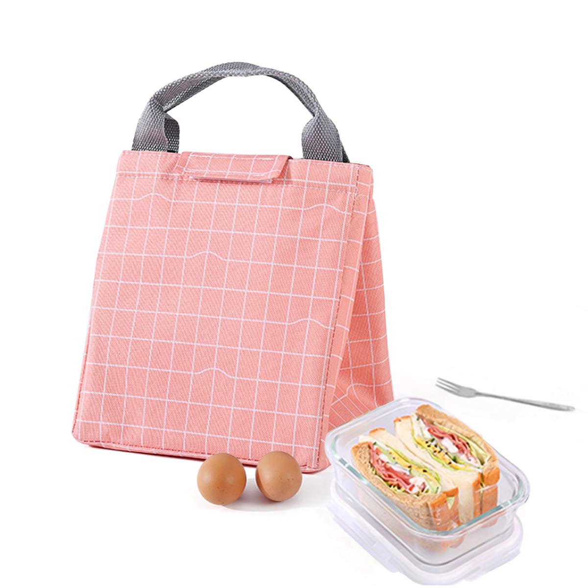 Wasserdichte LunchtaschePicknick, Lunch-Tasche, multifunktional, wiederverwendbar, tragbar, faltbar, wasserdichte Reise-Handtasche, isolierte Lunchbox 7.8inch*6.7inch*8.8inch Drak Pink