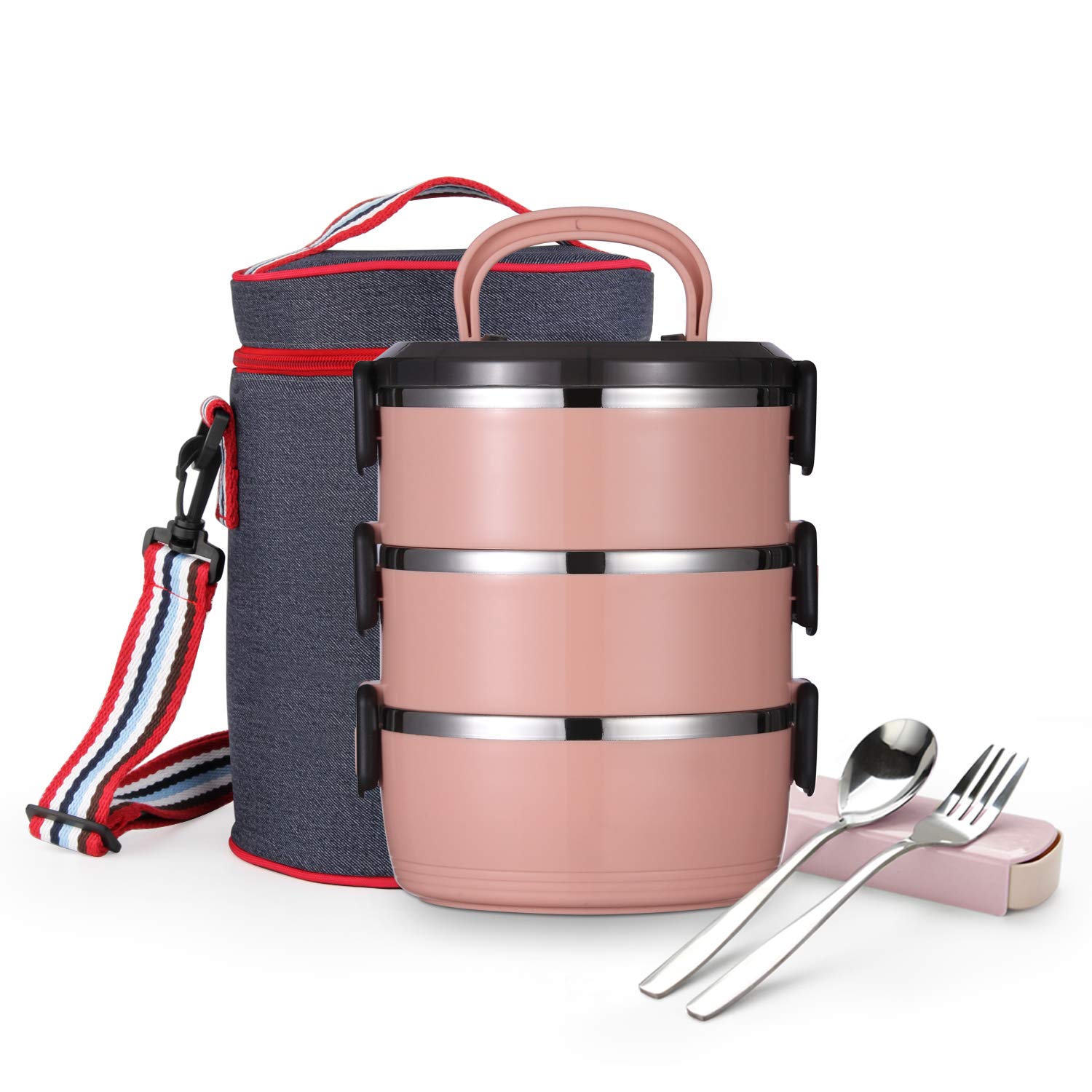 Arderlive Lunchboxstapelbar, isoliert, 18-8 Edelstahl, mit Denim-Lunchtasche, tragbar und auslaufsicher. 3 layer Orangerosa