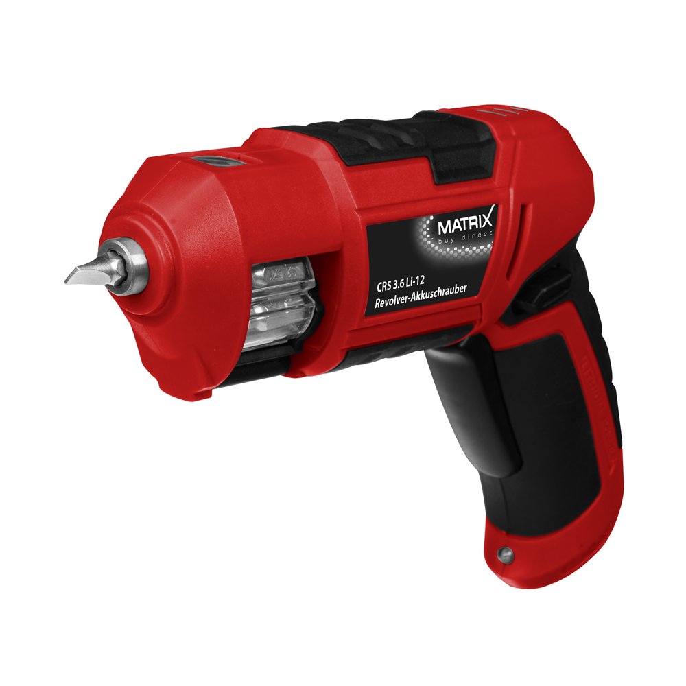 in MagazinschrauberMatrix 120310010 SchrauberPistolenschrauber, Magazinschrauber, klein, 1,5 Ah Akku, inkl. 18 Bits, Rot-Schwarz