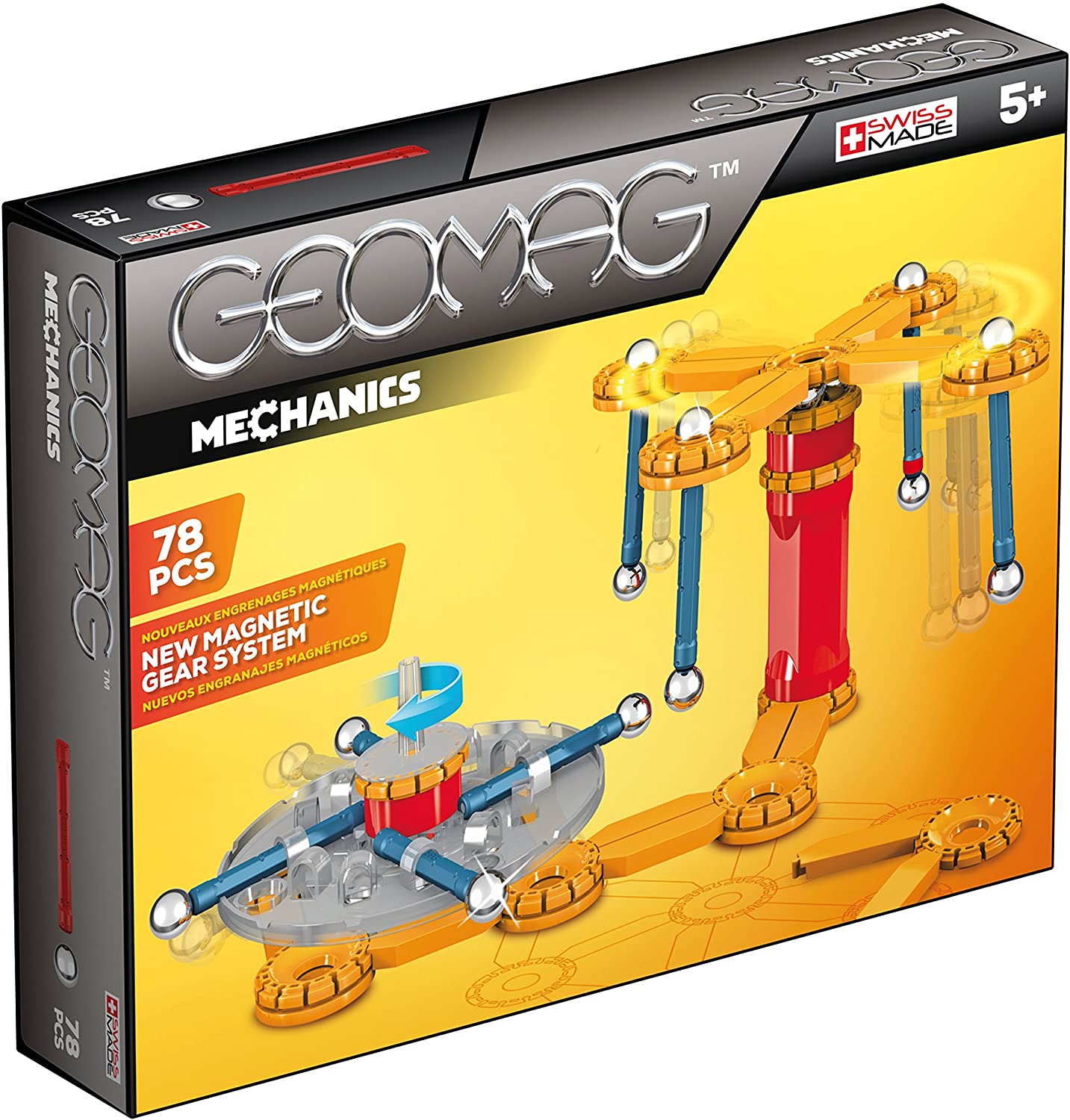 - Der Geomag 725 Magnetbaukasten enthält 78 Teile, darunter Magnetstäbe, Kugeln und mechanische Elemente.