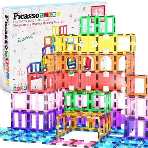 PicassoTiles PT42 Designer Artistry Kit 42pcs Set Magnet Building Tiles Clear Color Magnetic 3D Building Block - EducationalInspirational, Conventional, Recreational